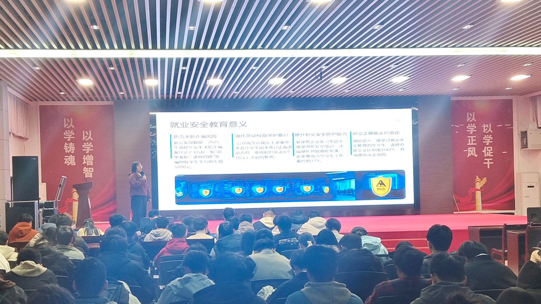 随后,由毕业班辅导员开展了系列主题教育班会:一是就业心理健康教育。旨在帮助毕业生缓解求职压力,培养积极阳光心态,提升应对求职挫折的能力;二是就业安全教育,旨在增强毕业生在求职过程中辨别招聘信息真伪、防范就业陷阱及保护个人权益的意识和能力;三是就业诚信教育,旨在引导学生树立契约精神,在简历制作、面试陈述、签约履约等环节坚守诚信底线,维护个人与学校声誉。主题班会内容贴近实际,案例生动,有效增强了毕业生的风险防范意识与职业素养。