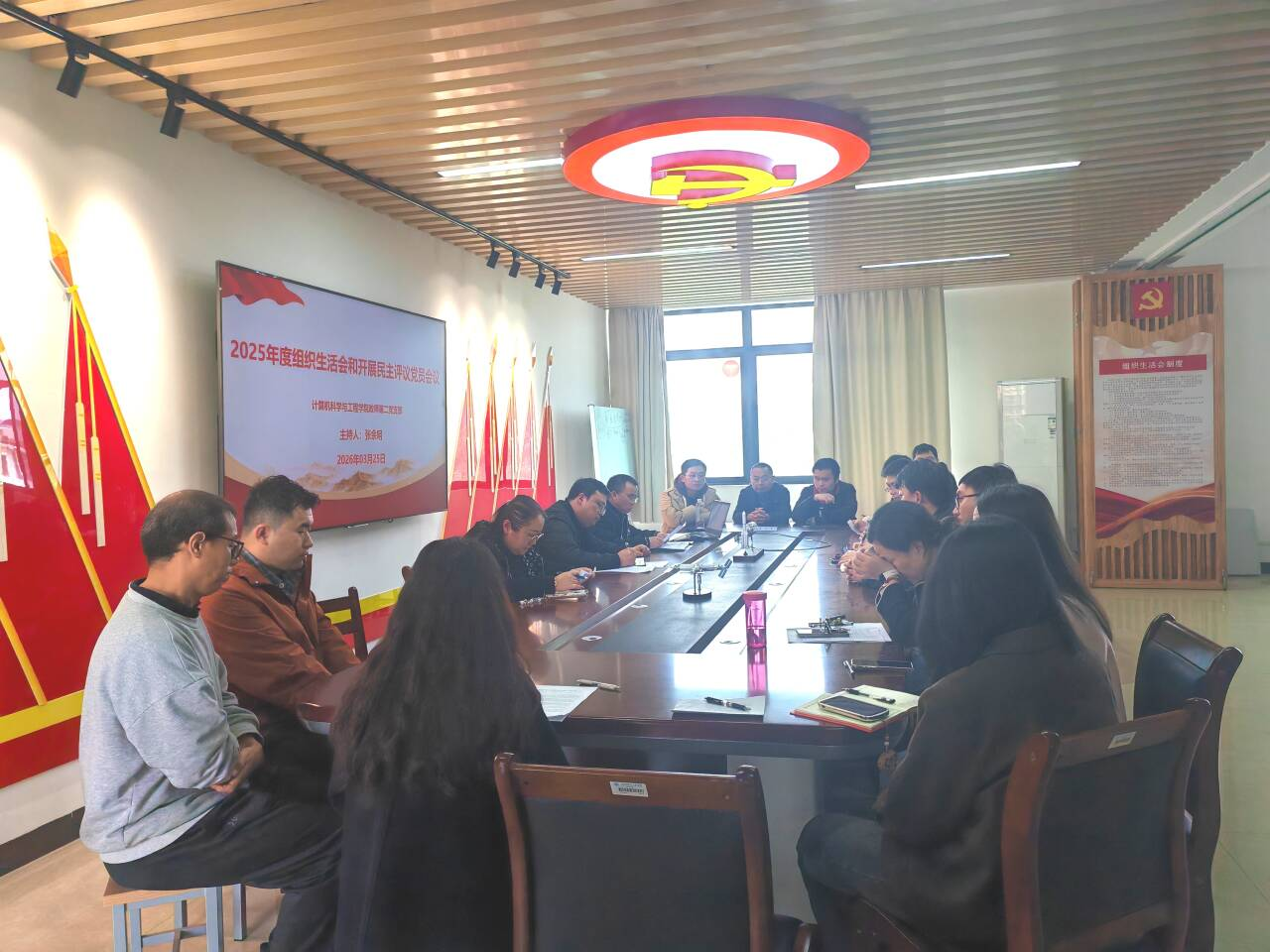为深入学习贯彻新时代党的建设总要求,持续强化支部政治建设、思想建设和作风建设,2026年3月25日,计算机科学与工程学院教师第二党支部召开“批评与自我批评”专题组织生活会。会议紧扣主题、严肃认真、务实高效,扎实完成各项规定议程,进一步统一思想、凝聚共识、锤炼党性。