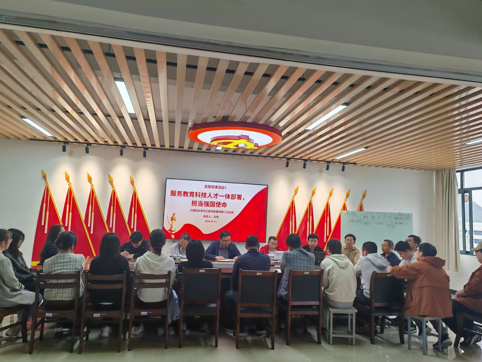 2026年4月15日,计算机科学与工程学院教师第二党支部在学院会议室 B335开展专题党课学习活动,支部全体党员参加本次学习。本次党课紧扣服务教育、科技、人才一体部署,担当强国使命核心主题,通过专题领学、深度研学、党课主讲相结合的形式,推动支部党员深化思想理论武装,树立践行正确政绩观,切实将学习成效转化为教书育人、科研攻坚的实际行动。